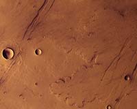 Paris, France (ESA) Mar 16, 2008 A new analysis of impact cratering data from Mars reveals that the planet has undergone a series of global volcanic upheavals. These violent episodes spewed lava and water onto the surface, sculpting the landscape that ESA's Mars Express looks down on today. Using images from the High Resolution Stereo Camera (HRSC) on Mars Express, Gerhard Neukum, Freie Universit�t Berlin, Germany, and colleagues are discovering the history of the Red Planet's geological activity. "We can now determine the ages of large regions and resurfacing events on the planet," says Neukum. Resurfacing occurs when volcanic eruptions spread lava across the planet's surface. This work has suggested that the sculpting of the Martian surface has not proceeded in a steady fashion, as it does on Earth. Rather, the team have discovered that Mars has been wracked by violent volcanic activity five times in the past, after the early supposedly warmer and wetter phase, more than 3.8 thousand million years ago. In between these episodes, the planet has been relatively calm. The five volcanic episodes stretch throughout Martian history, occurring around 3.5 thousand million years ago, 1.5 thousand million years ago, 400-800 million years ago, 200 million years ago and 100 million years ago. Neukum estimates that the dates of the earlier episodes are correct to within 100-200 million years and that the later dates are correct to within 20-30 million years. The ages have been estimated by counting the number of small craters that appear on the landscape. The idea is simple: the older the surface, the more craters it will have accumulated as meteorites of all sizes have struck over the ages. There has been a debate recently about the validity of this method. Some researchers believe that the small craters are not produced by incoming meteorites but by chunks of Martian rock blasted over the surface after a single large impact. However American researchers, analysing seven years' worth of images from the Mars Orbiter Camera (MOC) on NASA's Mars Global Surveyor, have found new craters appearing on the surface during that time. "The present day cratering rate can be calculated from their observations," says Neukum. It fits very closely with the cratering rate he established from the Mars Express data with Bill Hartmann, Planetary Science Institute, Tucson, Arizona, giving him confidence in the estimates. During these volcanic episodes, eruptions of lava flowed across Mars. The internal heat generated by the volcanic activity also caused water to erupt from the interior, causing wide-scale flash flooding. As for why Mars behaves like this, geophysical computer-based models suggest that the planet has been trying to establish a system of plate tectonics, as there is on Earth where the crust is broken into slowly moving plates. On Mars, the volcanic episodes represent the planet almost achieving, but not actually attaining, plate tectonics - and these volcanic episodes might not be over. "The interior of the planet is not cold yet, so this could happen again," says Neukum. Far from revealing a geologically dead world, Mars Express is exposing a place of subtle activity that could still erupt into something more spectacular. Community Email This Article Comment On This Article Related Links Mars News and Information at MarsDaily.com Lunar Dreams and more