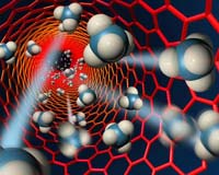 Oxford OH (SPX) Jan 25, 2008 Researchers in the laboratory of Miami University chemist Hong-Cai Zhou, associate professor of chemistry and biochemistry, report development of a microporous material with the highest methane storage capacity ever measured. It can hold almost one-third more methane than the U.S. Department of Energy's (DOE) target level for methane-powered cars, they report in a new study. Methane stands out among various alternative fuels when its profusion and availability are considered. However, the lack of an effective, economic and safe on-board storage system is one of the major technical barriers preventing methane-driven automobiles from competing with the traditional ones, say the study authors. In the past decade, a new type of highly porous crystalline materials called metal-organic frameworks (MOFs) have emerged as promising storage materials due to their high surface area, tunable pore size and modifiable surface. Several MOFs have been screened for methane storage but none have reached DOE target levels considered practical for fuel storage applications, the scientists say. Their paper, published in the January 23 issue of the Journal of the American Chemical Society, describes the synthesis and structural characterization of the metal-organic framework (MOF) designated PCN-14, based on a pre-designed anthracene derivative. (PCN stands for porous coordination network). PCN-14 contains nanoscopic cages suitable for methane storage, with a high Langmuir surface area of more than 2000 square meters per gram (m2/g). The methane uptake (absolute methane-adsorption capacity) of PCN-14 is 230 v/v - 28 percent higher than the DOE target of 180 v/v for methane and the highest ever measured. Authors of "Metal-Organic Framework from an Anthracene Derivative Containing Nanoscopic Cages Exhibiting High Methane Uptake" include Shengqian Ma, doctoral candidate (first author); Daofeng Sun, former postdoctoral research associate; Jason M. Simmons, National Institute of Standards and Technology and the University of Pennsylvania; Christopher D. Collier, senior biochemistry major; Daqiang Yuan, postdoctoral research associate and Hong-Cai Zhou. Community Email This Article Comment On This Article Related Links Miami University Space Technology News - Applications and Research