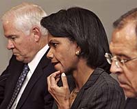 Washington (AFP) March 12, 2008 US Secretary of State Condoleezza Rice and Defense Secretary Robert Gates will visit Russia March 17-18, with Russo-US ties sorely strained by US missile defense plans, officials said Wednesday. With Iran, the Middle East, and Kosovo's declaration of independence also on the agenda, Rice and Gates will meet with their counterparts and seek talks with President Vladimir Putin and president-elect Dmitry Medvedev, aides said. Putin and US President George W. Bush agreed in a telephone call last week that the talks, a follow up to a similar round in October 2007, would be "a good idea," said White House spokeswoman Dana Perino. "The agenda will cover a broad range of bilateral strategic issues, including missile defense, post-START arrangements, cooperation on non-proliferation as well as counterterrorism," she said. Washington wants to adjust the verification mechanisms under the Strategic Arms Reduction Treaty (START), which can be renewed when it expires in December 2009, to apply to the 2002 Moscow Treaty on nuclear weapon reductions. Asked whether the discussions would also cover possible next steps in the efforts to confront Iran over its nuclear program, Perino said the topic was not on her list, but "I'm sure that they'll talk about it." Moscow angrily opposes Washington's hopes to deploy a missile defense radar in the Czech republic and 10 interceptor missiles in Poland by 2012 as part of a shield that Bush says will counter a possible missile launch by Iran. Russia says it views the deployment of such a system as a threat to its security, and has warned it may target the host countries -- both formerly Soviet satellites -- with nuclear weapons. Bush has met separately in the past two weeks with the Czech and Polish prime ministers. The Czech prime minister suggested a deal was imminent, while Poland's defense minister now says a decision is "much closer." The meeting will take place as Putin has only weeks -- until Medvedev takes office May 7 -- to formally sign any accord with Washington. Asked whether Rice and Gates would meet with either Russian leader, a US official who requested anonymity replied: "We'll look for both of those, we'll see them." US officials note that the visit will come ahead of an early April NATO summit that they expect will further strain relations because of possible eastward expansion of the alliance designed to contain the former Soviet Union. "Both presidents are going to see each other at the Bucharest summit in a few weeks, and they thought it maybe right to have their principal foreign affairs and defense leaders get together and discuss some of the issues we've been working on, to see if we can make additional progress before the NATO summit," said Pentagon spokesman Geoff Morrell. Another US official, who also requested anonymity, said the timing and location of the meeting aimed to "make more forward progress" on the missile defense issue than has been possible in lower-level talks. "There have been plenty of expert-level meetings. It's time for the secretaries and ministers to meet," said the official, who played down prospects for a breakthrough on the dispute. At similar talks in Moscow in October, Rice and Gates found a newly assertive Kremlin firmly resistant to Washington's missile defense plans. And Putin surprised the US officials with a blunt warning that Russia would abandon a key nuclear missile treaty, and a mocking suggestion for cooperating someday on a missile shiled "established somewhere on the moon."